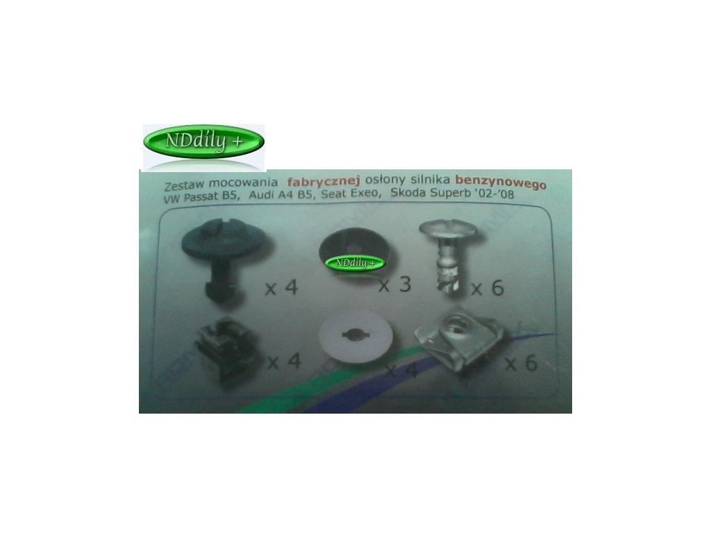 Set sponek pro kryt motoru Škoda Superb, pro připevnění spodního krytu motoru, 27ks. Před objednáním ověřte správnost vybraného dílu s parametry vozidla v záložce "Parametry" pod obrázkem. Pokud uvedený díl nesouhlasí s Vámi hledaným, nebo máte dotaz na dostupnost a cenu, kontaktujte nás emailem info@nddily.cz nebo telefonicky +420732649292. Rádi Vám obratem odpovíme.