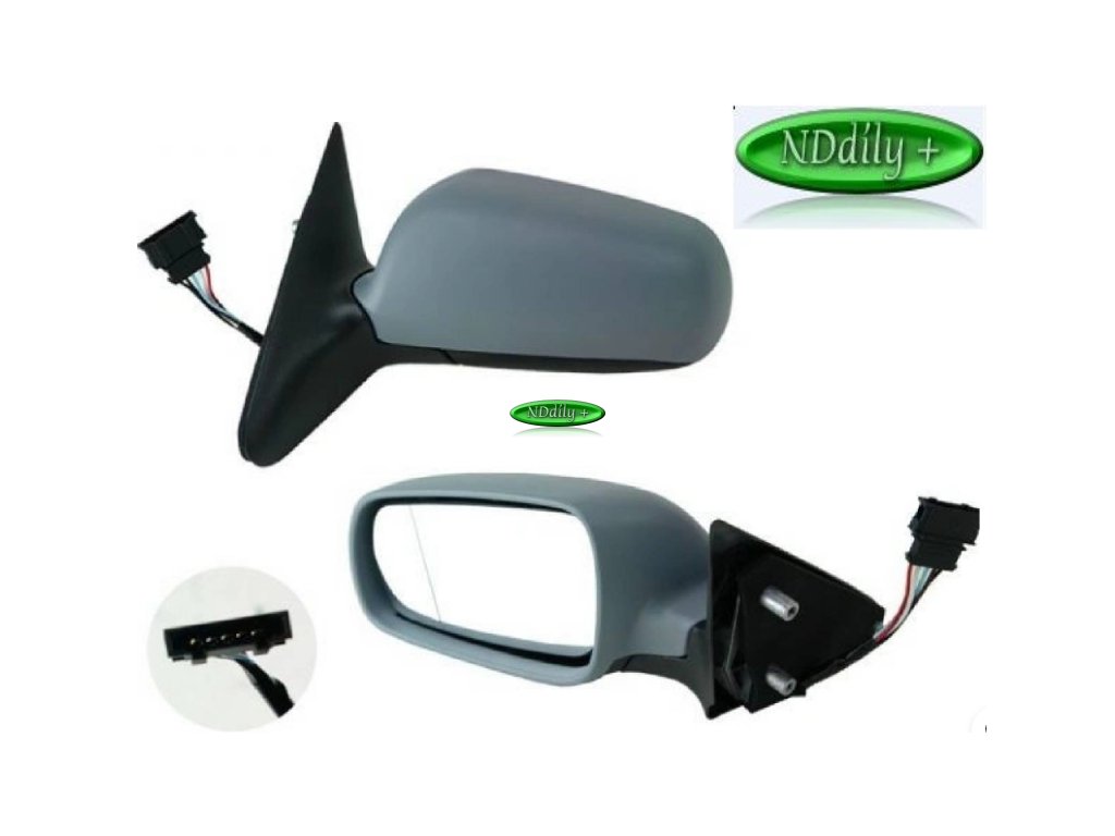 Vnější zpětné zrcátko Škoda Octavia I, chromované asférické sklo, elektrické, vyhřívané, konektor: 5 pinů, kryt se základním lakem (pro lak), levá strana - velké. Před objednáním ověřte správnost vybraného dílu s parametry vozidla v záložce "Parametry" pod obrázkem. Pokud uvedený díl nesouhlasí s Vámi hledaným, nebo máte dotaz na dostupnost a cenu, kontaktujte nás emailem info@nddily.cz nebo telefonicky +420732649292. Rádi Vám obratem odpovíme.